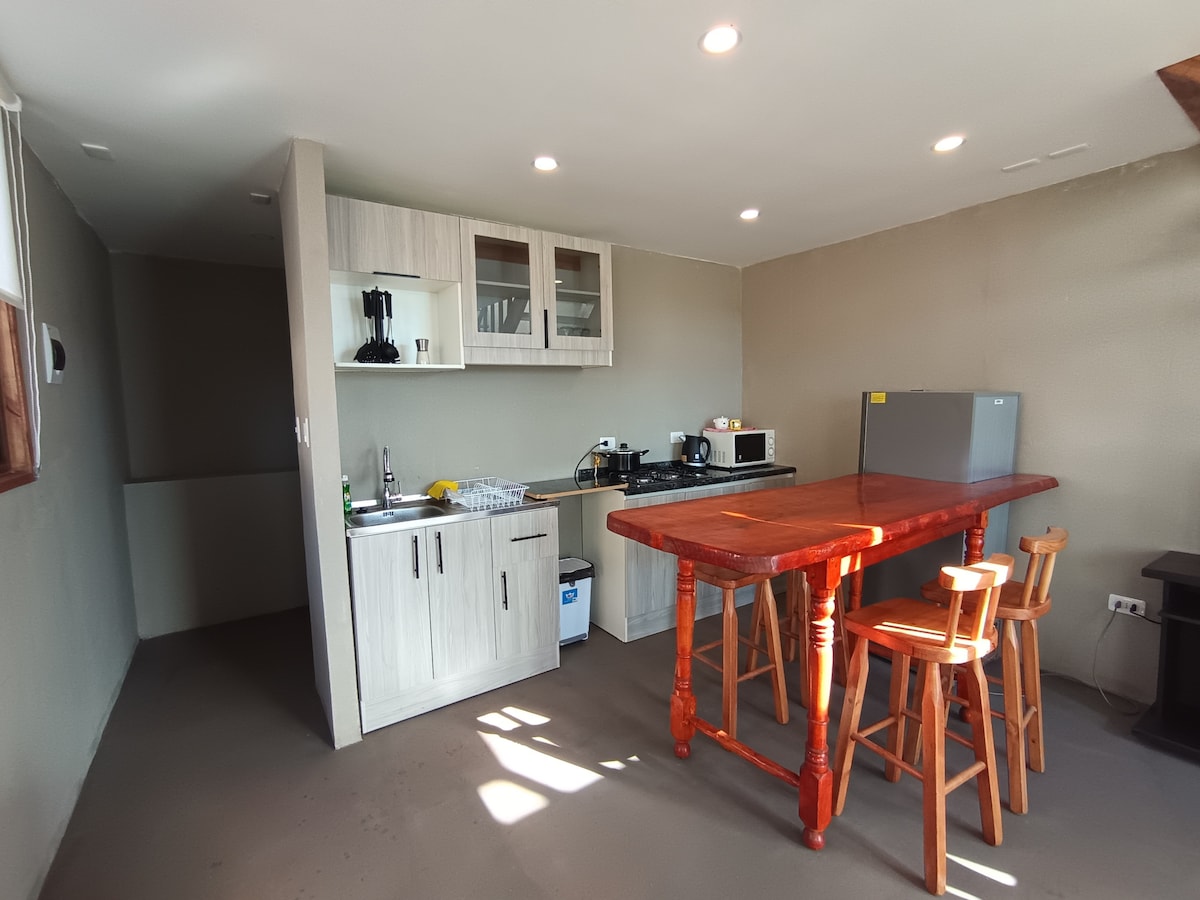 Viento Sur Pichilemu er staðurinn sem þú hefur verið að leita að. Smáhýsin okkar eru hönnuð fyrir afslöngun og ánægju þar sem sjávarútsýni, notaleg rými með staðbundnum smáatriðum og handverk sem endurspeglar anda svæðisins koma saman. Frábær staðsetning, aðeins nokkrar mínútur frá Punta de Lobos, tilvalið fyrir brimbrettakappa, sjávarunnendur eða alla sem vilja skoða Pichilemu frá náttúrulegu og einkastæði. Matvöruverslun, kaffihús og veitingastaðir eru mjög auðvelt að komast að með bíl eða göngu.