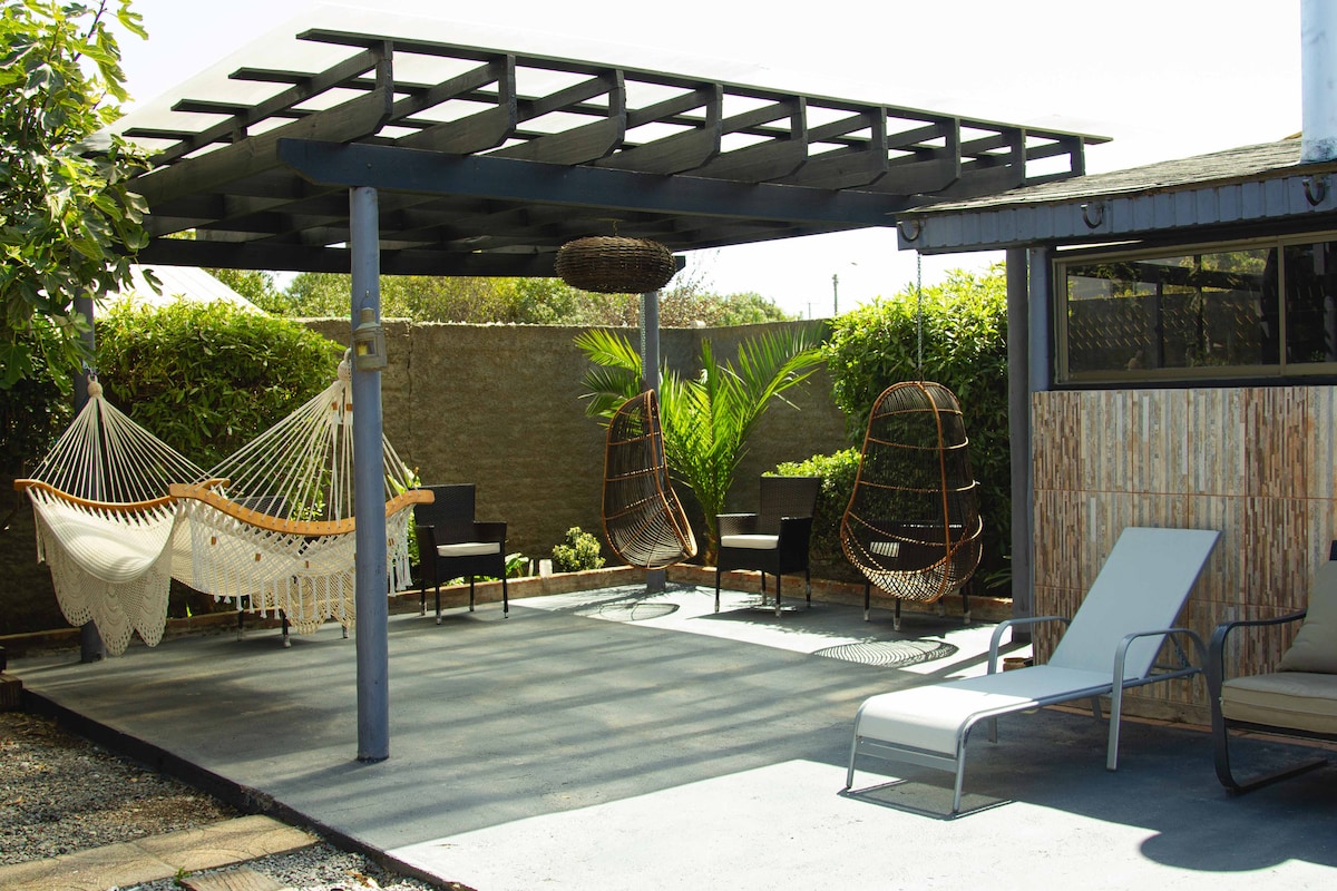 Njóttu Pichilemu án bíl í þessari nýju kofa í hæsta gæðaflokki. Þú munt njóta frábærrar staðsetningar, aðeins nokkra skref frá Altomar og ströndinni. Útbúið fyrir 8 manns með 3 svefnherbergjum (2 hjónaherbergi), fyrsta flokks eldhúsi og „The Frame“ sjónvörpum (listahamur). Tengstu háhraða Starlink og slakaðu á á veröndinni með grillveislu. Inniheldur upphitun, rúmföt, handklæði og bílastæði fyrir 2 bíla. Fyrsta flokks gæði og þægindi í fríinu!