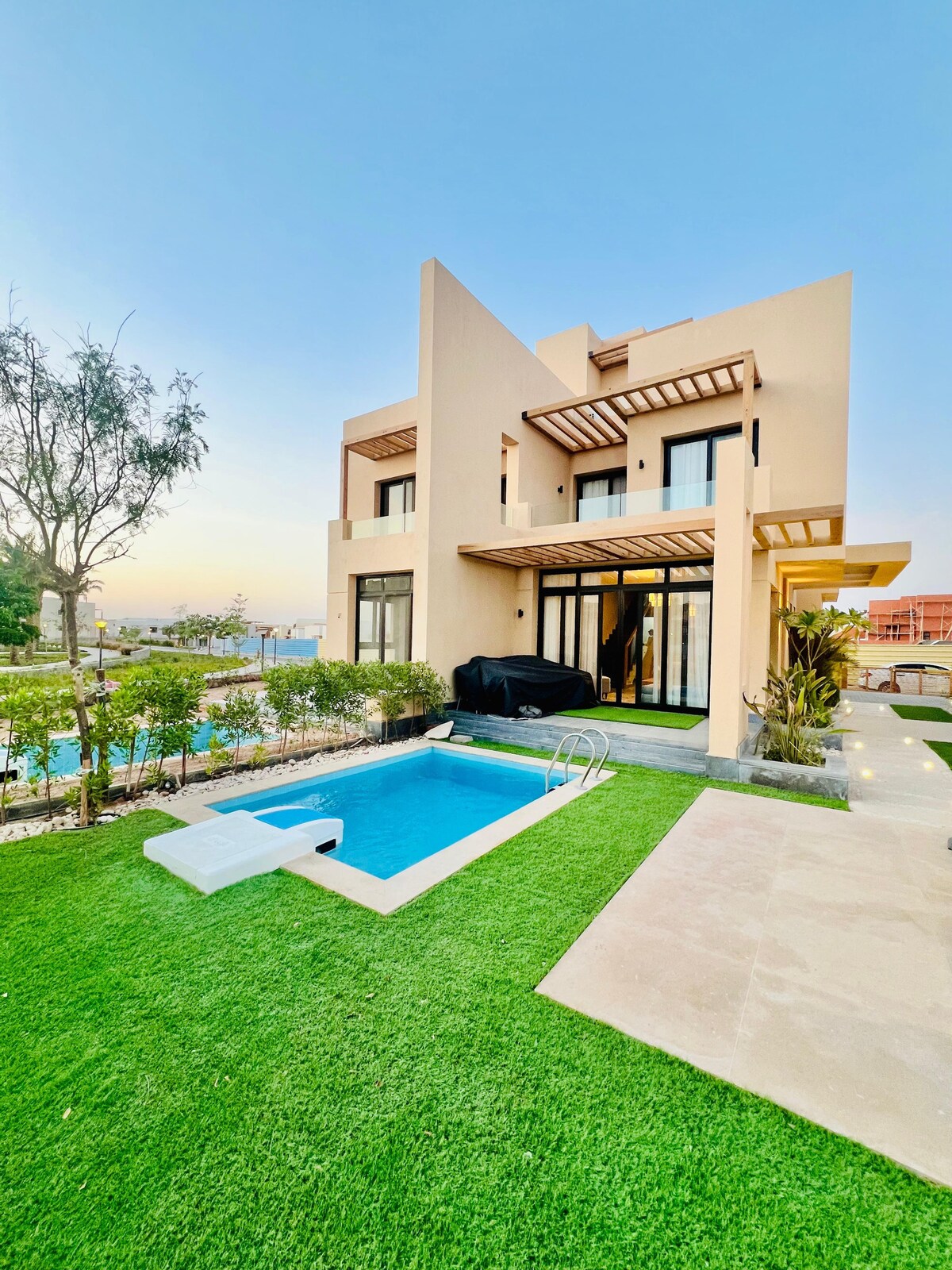 Amazing and Unique in Hurghada, family friendly holiday home or a romantic get away for honeymooners with a large private swimming pool only for you,nothing is shared Spacious livingroom, with open kitchen and toy corner Up, Master bedroom ensuite with shower and a bedroom with kingbed, bunkbed and a Playstation5 Bathroom to fully relax with a big Jacuzzi The villa is fully eqiuped with all what you need We will be honored to welcome you and make your stay amazing and arrange trips for you