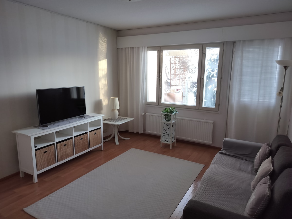 Rúmgóð íbúð á miðlægum stað. Við hliðina á þjónustu slagæðaþorpsins, sem og 6 leiðinni, sem er auðvelt að koma við í eina nótt. Í íbúðinni eru allir daglegir munir og tæki. Í íbúðinni er svefnaðstaða fyrir fjóra og, ef þörf krefur, uppdraganlegur hægindastóll sem hentar litlum gesti sem aukarúm. Strönd og bitbraut í göngufæri. Þjóðgarðar eru nálægt Koli, Tiilikkajärvi, Hiidenportti, Peuraajärvi. Gæludýr leyfð.