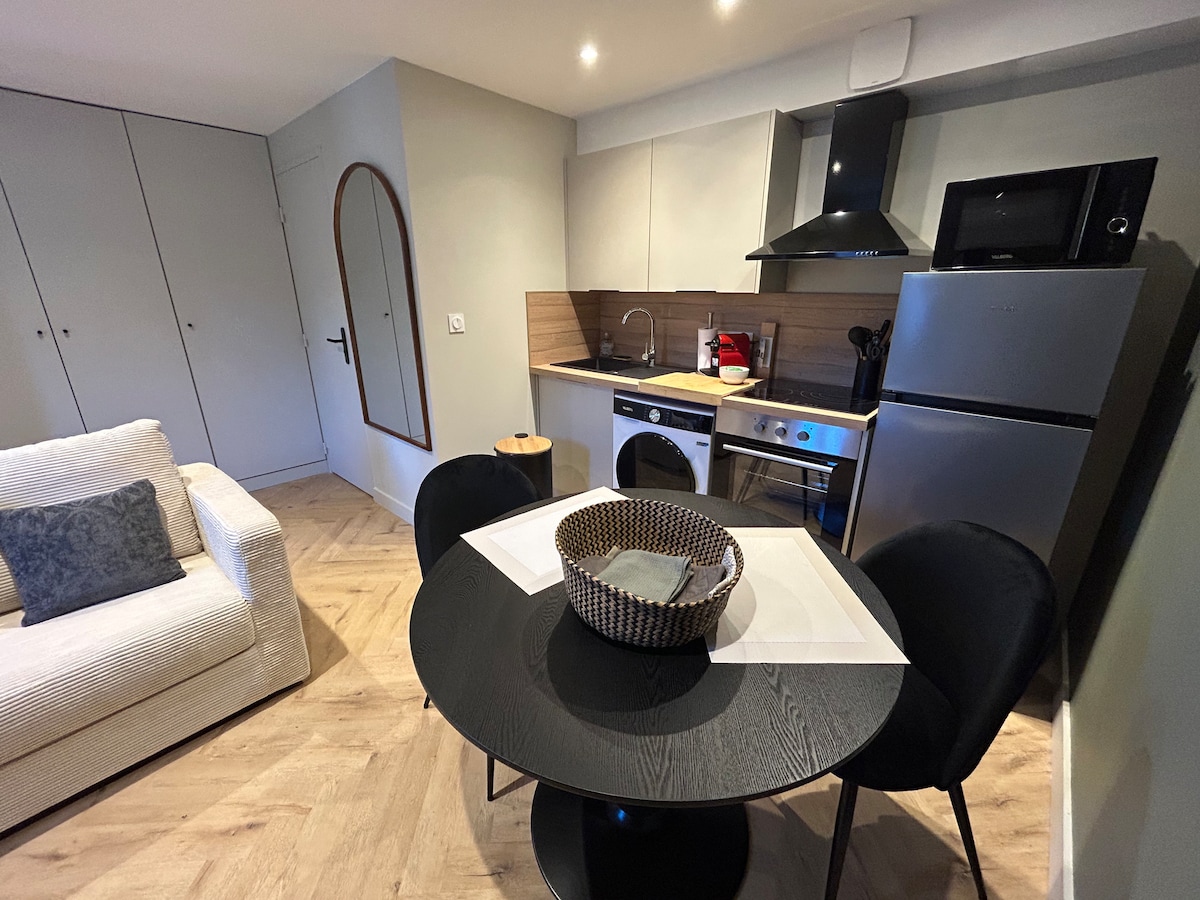 Þetta fallega, hlýlega og vel útbúna stúdíó hefur verið enduruppgert í flottum innréttingum. Góður svefnaðstaða, aðskilin frá laufskrúði, með útsýni yfir stofuna og eldhúsið. Það er staðsett í rólegum bakgarði á jarðhæð. Tilvalin staðsetning þess í miðborg Oullins, við rætur þægindanna mun laða þig að. Hún er í 150 km fjarlægð frá Oullins-lestarstöðinni, neðanjarðarlestinni, strætóleiðunum sem tengja Lyon og suðvesturhluta Lyon. Aðgangur að A7-hraðbrautinni á bíl tekur 5 mínútur.