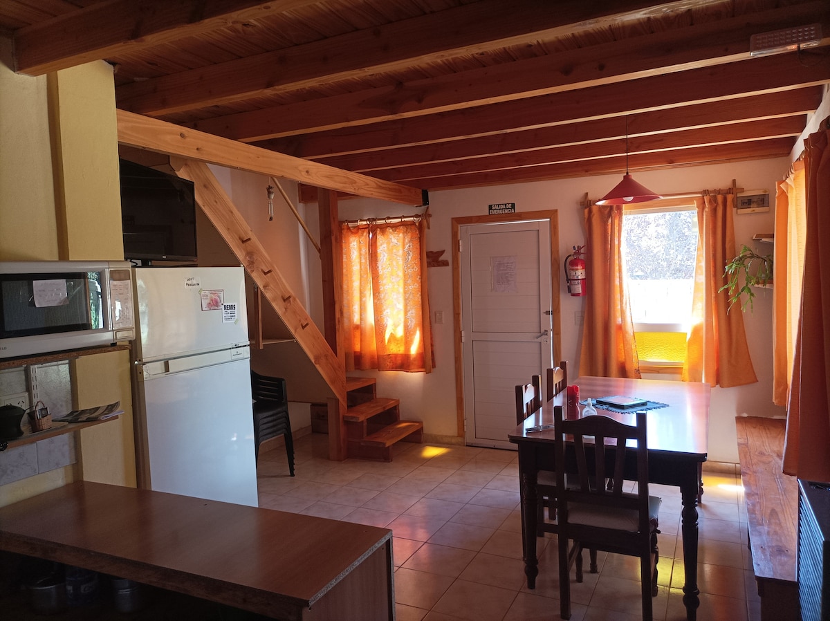 Njóttu þægilegrar og friðsællar dvalar á heimili okkar í Dina Huapi, í nokkurra mínútna fjarlægð frá Bariloche. Fullbúið með tveimur svefnherbergjum, nútímalegu baðherbergi, fullbúnu eldhúsi og bjartri stofu, lokaðri eign. Tilvalið fyrir fjölskyldur eða hópa sem vilja hvílast og tengjast náttúrunni. Nálægt vötnum, fjöllum og þjónustu. Við bíðum eftir ógleymanlegri upplifun í Patagóníu!
