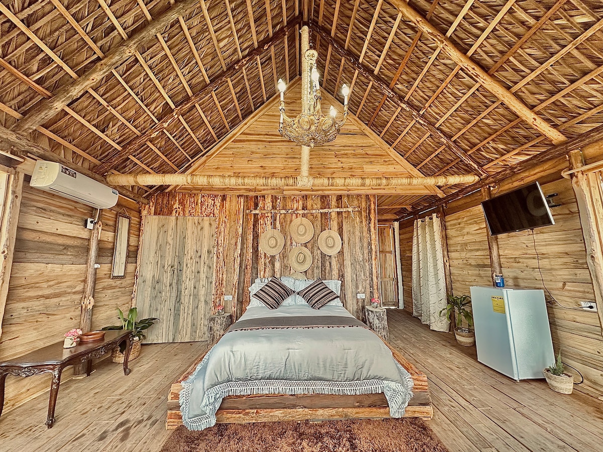 Viðarkofinn okkar er tilvalinn staður fyrir landkönnuði til að njóta einstakrar sveitakvölds með villtu dýrunum. Sveitalegar og vandaðar skreytingar eignarinnar, hengiljósakrónan, glæsilegt queen-rúmið og sérbaðherbergið sem prýðir herbergið gera dvöl þína yndislega. Gluggarnir, með yfirgripsmiklu útsýni yfir náttúruna, ána og tóbaksplantekrur, veita þér ótrúlegustu upplifun þegar þú vaknar á morgnana.