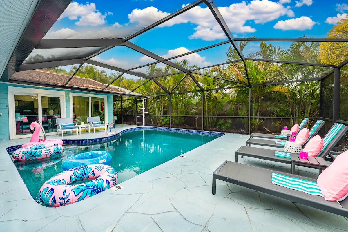 ☀️ Ertu að leita að gististað sem öll fjölskyldan/hópurinn getur notið? Þetta nútímalega heimili er staðsett miðsvæðis og er fullt af skemmtun og stíl. Það býður upp á allt sem þú þarft, allt frá vel búinni eldhúskrók 🍽️ til strandmuna ⛱️ og fleira. Njóttu eignar sem er fullkomin fyrir Instagram með minigolfi með fimm holum, risastórum útileikjum, upphitaðri laug, spilakössum og borðspilum og notalegum rýmum bæði innan- og utandyra. 📍 Aðeins 9,5 km (6 mílur) til strandarinnar og miðbæ St. Pete — fullkomið fyrir fríið þitt!