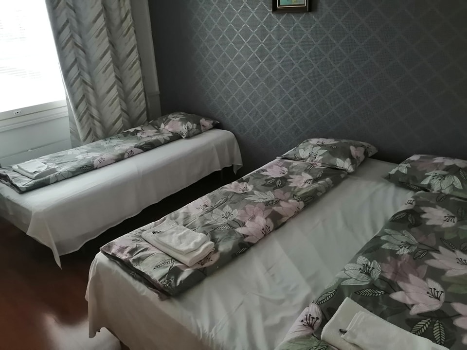 You can stay cheaply in a 4-person doubleroom on business or vacation trips. Located on the side of the yard. Two separate beds and one double bed. Pets are not allowed in this room. Double bed and 2 beds. All our room prices incl. VAT 10.0% and towels & bed linen included. Easy and free parking & WiFi. All rooms have so-called kitchenette with fridge, own shower and toilet. You will find our accommodation on the main street opposite the market square, right in the center of Virrat city.