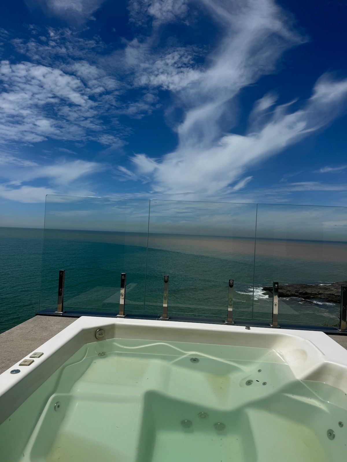 Cobertura à Beira-Mar em Piúma Localização: Frente para a praia, perto de cinema, restaurantes e farmácias. Quarto: 1 cama de casal e 2 colchões de solteiro. Entretenimento: TV na sala e no quarto, Wi-Fi. Climatização: Ar-condicionado no quarto, ventilador de teto na sala e quarto. Cozinha: Completa com fogão, geladeira, micro-ondas, sanduicheira, liquidificador, airfryer e utensílios. Estacionamento: 1 vaga de garagem. Vista: Maravilhosa da orla de Piúma. Observação: 5 andares de escada.