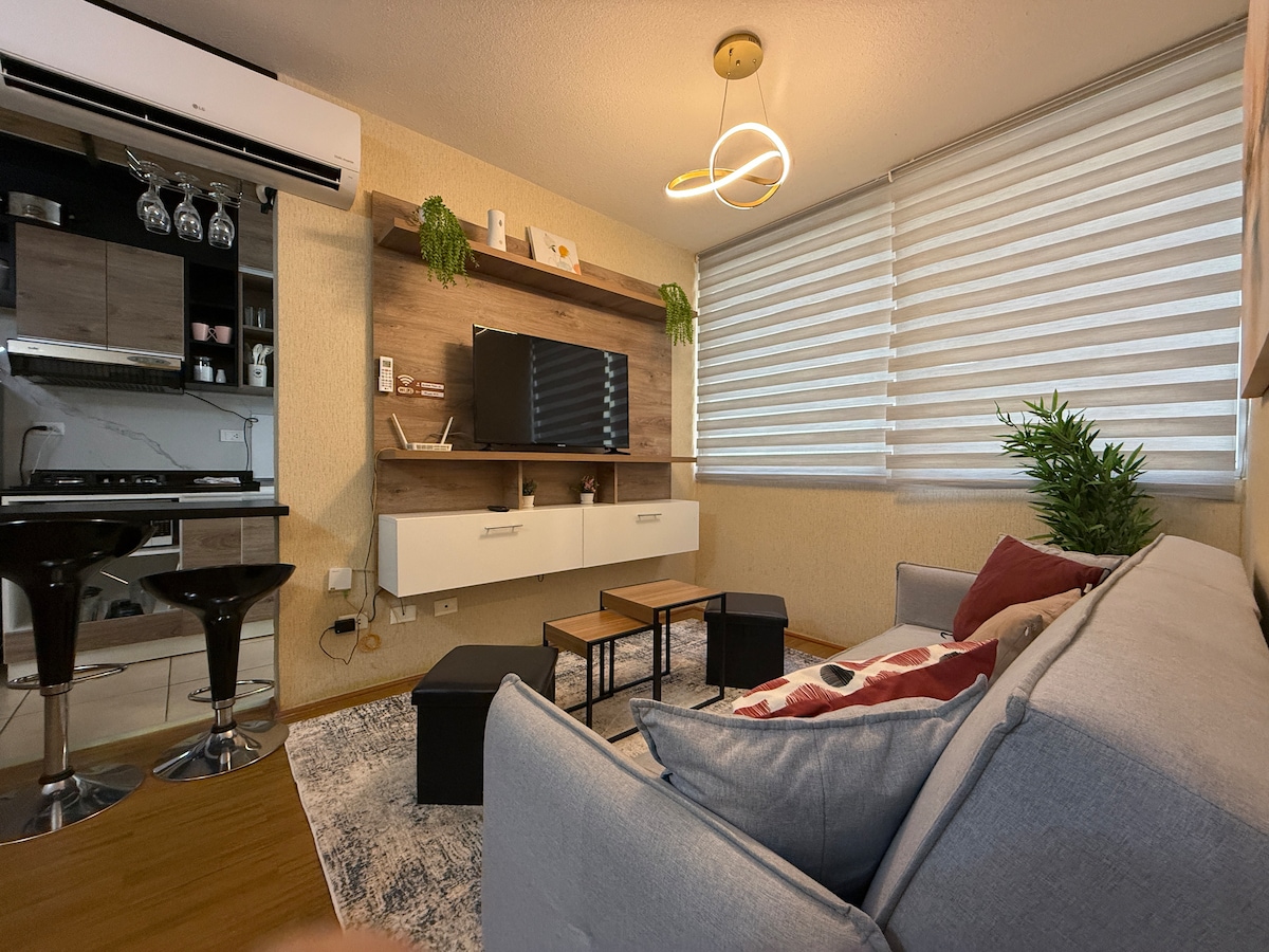 Funcional Departamento ideal para parejas o viajeros de negocios en una zona cerrada, tranquila y segura con múltiples centros comerciales y restaurantes cercanos. Disfruta del sunset en la tarde y una buena película en tu streaming favorito.