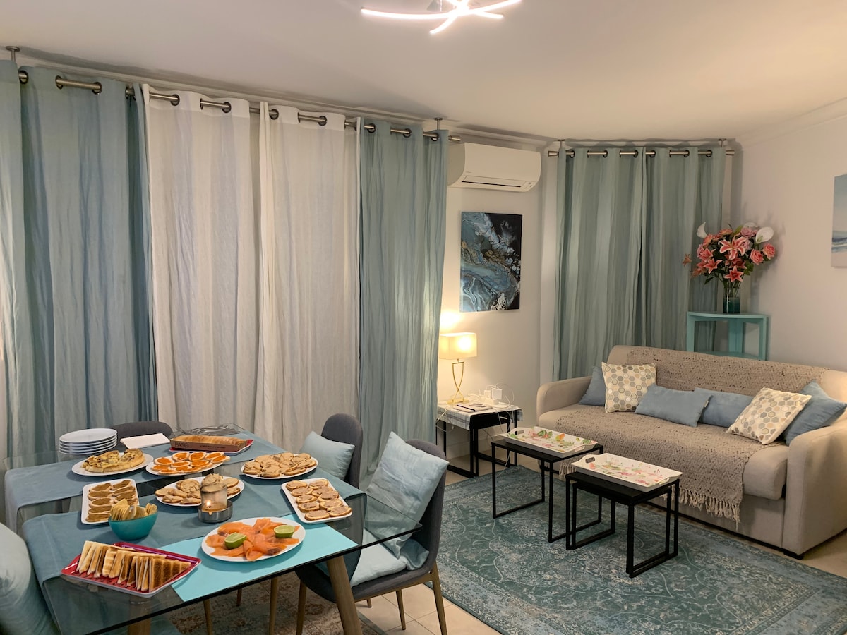 Sólríkt 2 svefnherbergi með loftkælingu nálægt stórmarkaði og ströndum