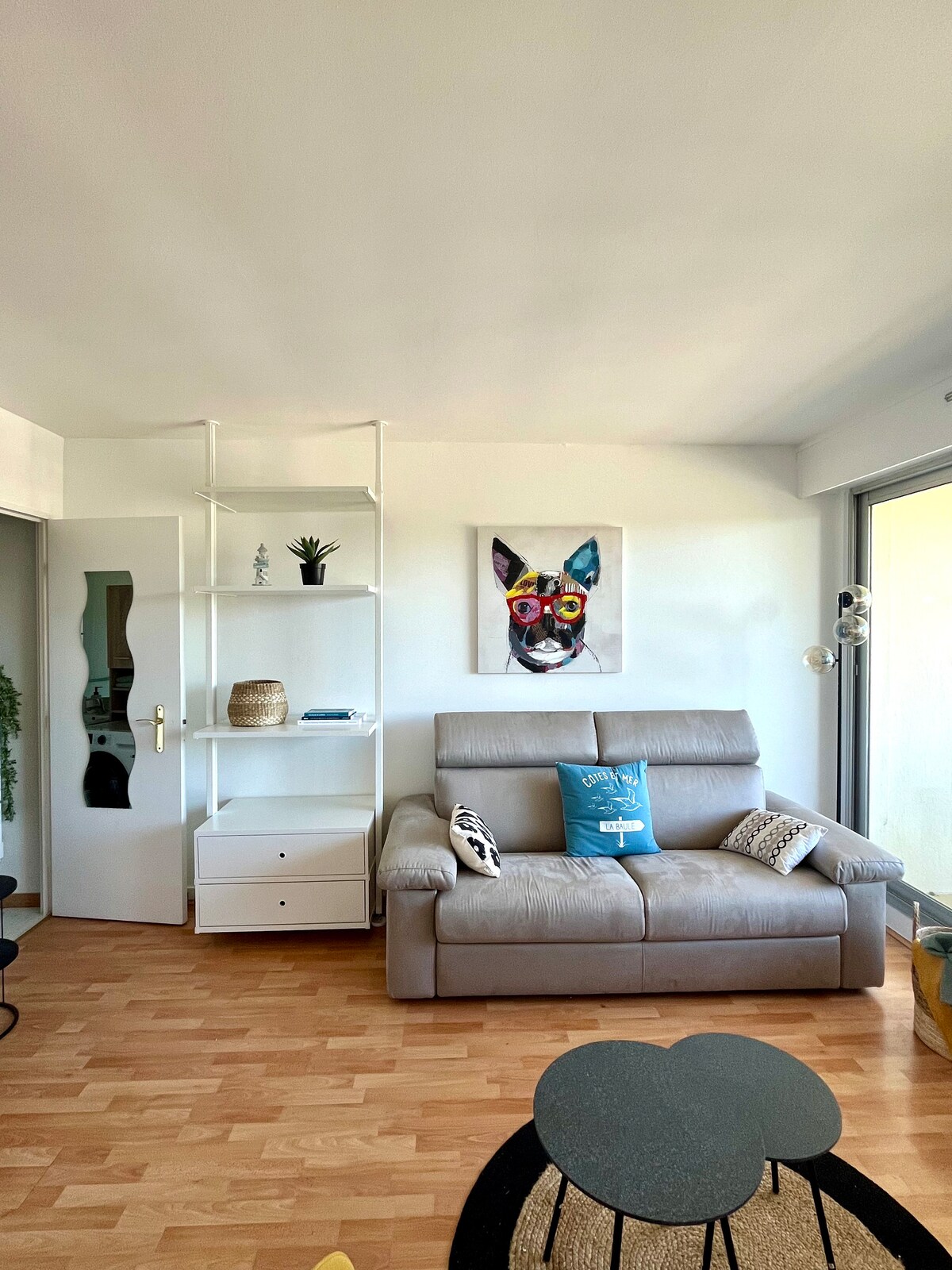 Íbúðin okkar er á 3. hæð með lyftu í uppgerðri byggingu með útsýni yfir sjávarsíðuna með stórkostlegu útsýni frá stofunni og svölunum. Fyrir framan bygginguna: enginn bíll, strandstígur fyrir fallegar gönguleiðir eða reiðhjól. Verslanir eru fótgangandi. Lokaður bílskúr er í boði. Þægindin eru vönduð og næg. Salernið er aðskilið. Ódæmigerð hlið: Sturtan og hégóminn eru í svefnherberginu.