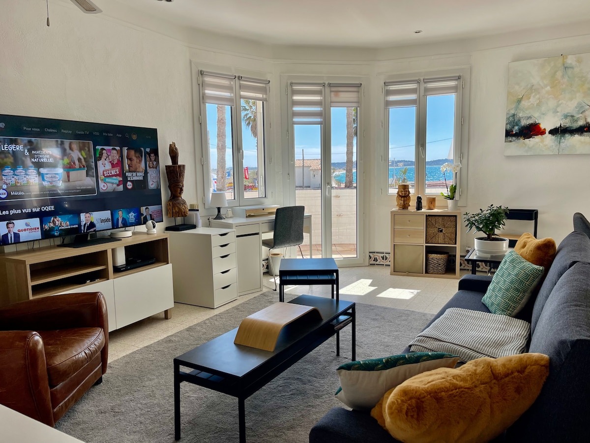 Nýtt þægilegt stúdíó með verönd með sjávarútsýni og útsýni yfir höfnina. Mjög bjart rúm í queen-stærð, loftkæling sem hægt er að snúa við, sjónvarp með flatskjá, internet, baðherbergi með sturtu, innréttað og vel búið eldhús, þvottavél, svalir/verönd með garðhúsgögnum... Staðsett á 1. hæð með lyftu í öruggu húsnæði. Stórt ókeypis almenningsbílastæði í 50 metra fjarlægð. Strönd í 300 m fjarlægð Allar verslanir og þjónusta fótgangandi (veitingastaðir, barir, bakarí, matvöruverslun, læknar, apótek...)