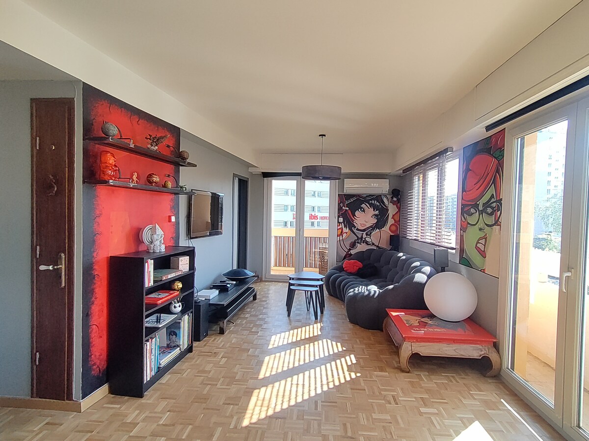 Verið velkomin í fallegu 61m2 íbúðina mína, mjög nálægt gömlu höfninni í Marseille. Rétt fyrir neðan Panier og í 30 sekúndna fjarlægð frá neðanjarðarlestinni er staðsetning hennar tilvalin til að heimsækja alla fallegu staðina í Marseille. Það var gert upp að fullu árið 2022 og er tilvalið fyrir fjölskyldufrí, borgarferð með vinum eða viðskiptaferð.