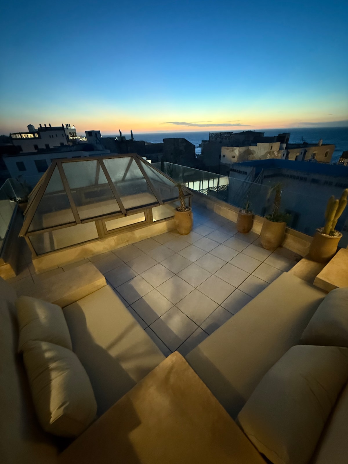 Þessi einstaka gisting, við inngang Medina, er ein af fallegustu veröndunum í Essaouira! Efsta hæðin og einkaþakveröndin eru á hæstu hæð í Méchouar-hverfinu (hús byggt árið 1835)! Þessi 140m² „loftíbúð“ stendur nú til boða fyrir forréttindagesti sem munu bóka hana. Verönd með húsgögnum og 360° útsýni nálægt öllum kennileitum og þægindum svo að auðvelt er að skipuleggja heimsóknina til Essaouira.