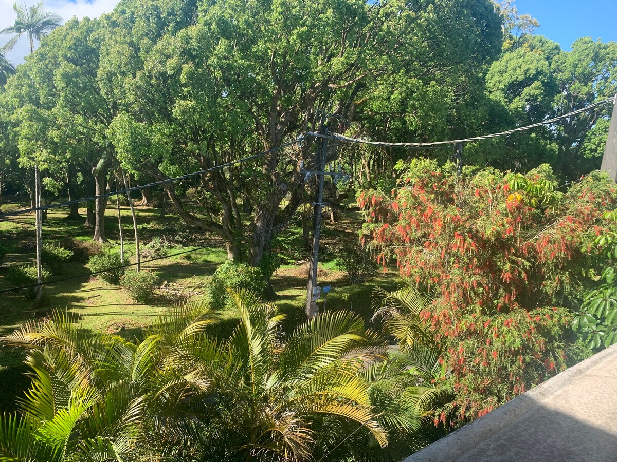 ACCOMMODATION FOR WOMAN AND CHILDREN ONLY (NO MALE) Accessibility of bus stop walking distance 1 mins, bakery approximately 300m away. Supermarket 3km away, Bank , money exchangers and commercial centre approximately 6km. Botanical garden approximately2 km.Bus terminus6km. Room,balcony,living room & rest room are with garden view with nature plants. Kitchen facing the upper hill of Trou-aux-cerfs the volcano grater with nature plants. 15 mins access to metro station.Clinics 3,4,5 mins drive.