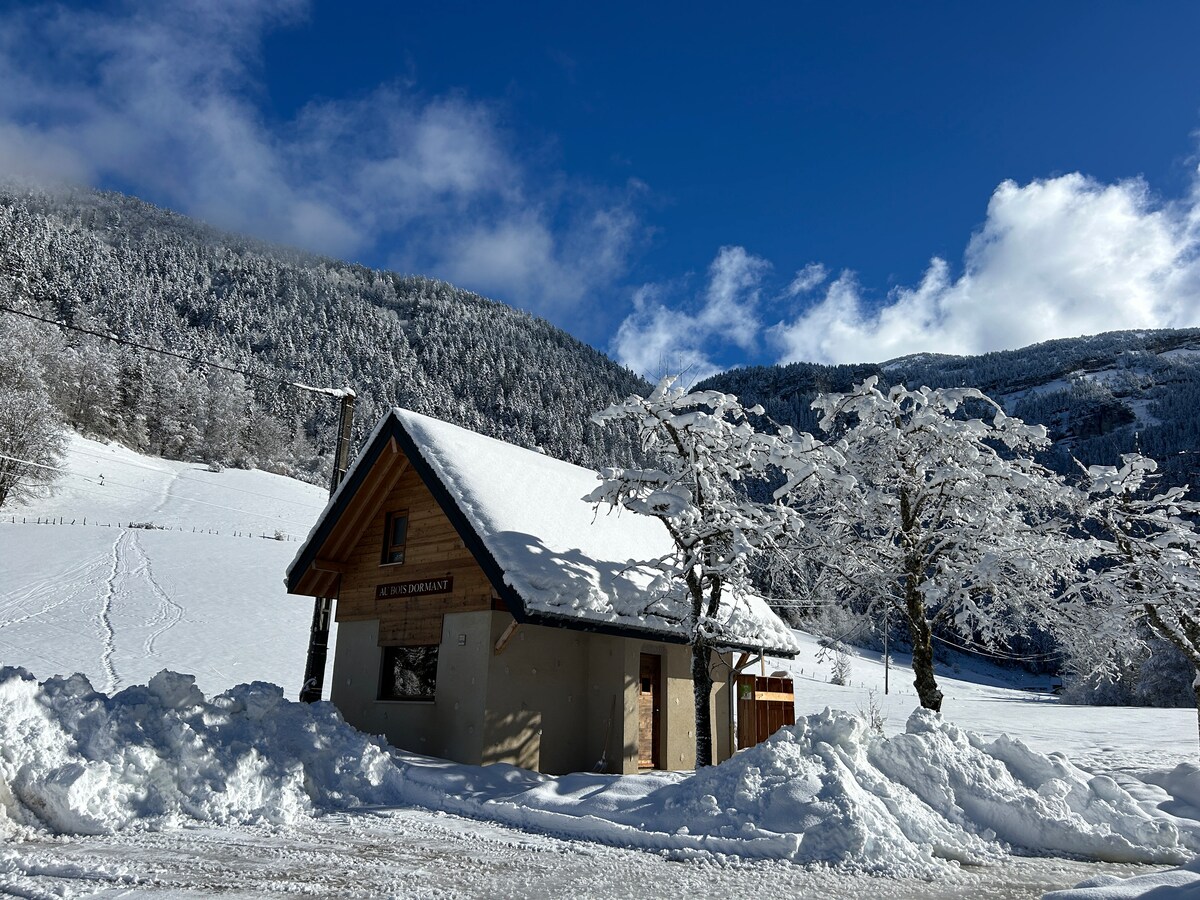 Une vue panoramique époustouflante sur les montagnes depuis le balcon, une pièce à vivre tout bois, grande hauteur sous plafond, une atmosphère qui invite à la détente... Le balcon s’ouvre sur un terrain en pente bordé par un ruisseau, discret selon la saison avec en fond sonore, le charme discret des clarines. Une immersion nature totale. Chambre intime, parking, accès facile toute saison, local matériels. Draps, serviettes, TV, internet fibre. Check-in libre. Idéal pour un duo en sérénité !