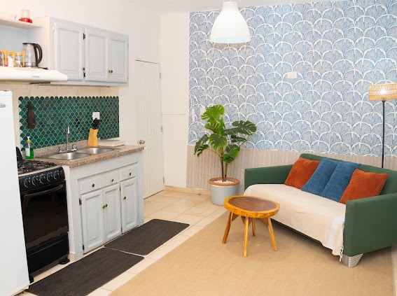 Þessi íbúð á jarðhæð er fullkomin fyrir vetrarfugla og fjarvinnufólk og býður upp á 100 Mbps þráðlaust net, loftræstingu, loftviftur og fullbúið eldhús. 10 mínútna göngufjarlægð frá Sosúa og Alicia ströndum og 12 mínútur frá POP flugvelli. Staðsett í öruggu íbúðahóteli með sundlaug, móttöku, þvottaþjónustu, áriðli/rafali, bar og veitingastað. Nokkur skref frá veitingastöðum, verslun, næturlífi og öllu nauðsynlegu.
