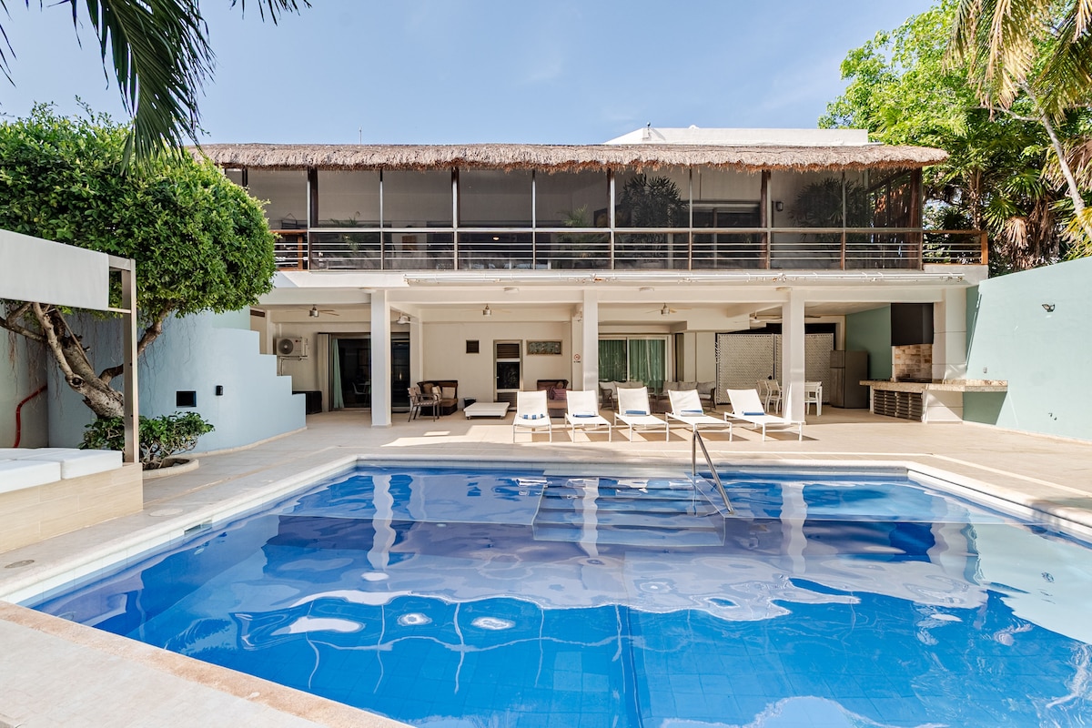 Fylgdu Insta okkar: lunaresorts til að sjá fræga fólkið semhefur gist hjá okkur, Bella Thorne osfrv. Villa Luna er eign við ströndina, við ströndina, með ótrúlegu útsýni yfir Karíbahafið, 2 sundlaugar, tennisvöll og nýtt leikjaherbergi í bílskúrnum. Með beinum aðgangi að meira en 2 km af gönguvænni strönd og stórri strandverönd á einstaka hótelsvæðinu í Cancun verða allar óskir þínar uppfylltar með einkasundlauginni okkar, BQQ, hangandi ljósum. Einkaöryggi okkar allan sólarhringinn og verðlaunaður kokkur og starfsfólk mun tryggja lúxus
