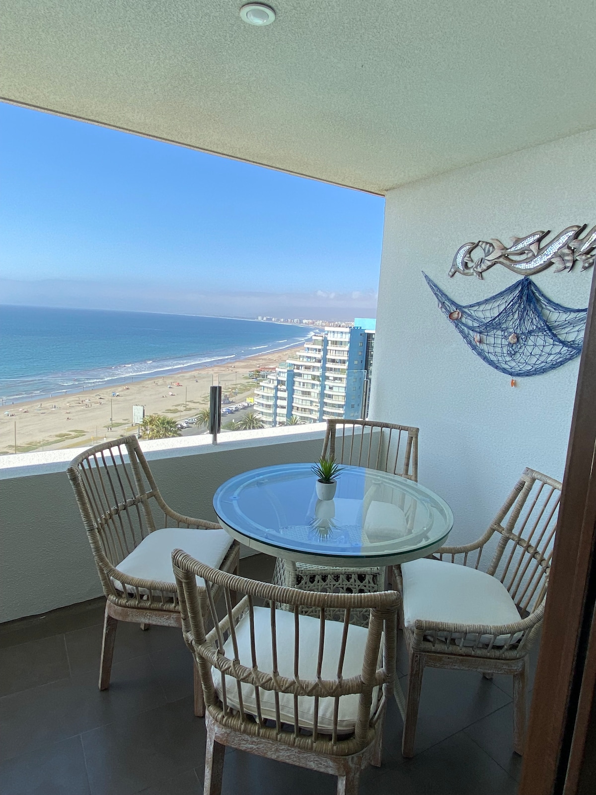 Escapate frente al mar con tu familia. En cualquier época del año, sientete como si estuvieras en tu hogar. Atardeceres desde la terraza, donde se ve toda la bahía de coquimbo y la serena. En las noches cielos despejados y estrellados, respirando el aire marino. Todo esto frente del mar, piso 19, para 5 personas. A un costado del casino Enjoy. piscina al aire libre y vista al infinito. Kinchos Con vista panoramica. Estacionamiento gratis. Saliendo del condominio avenida costanera