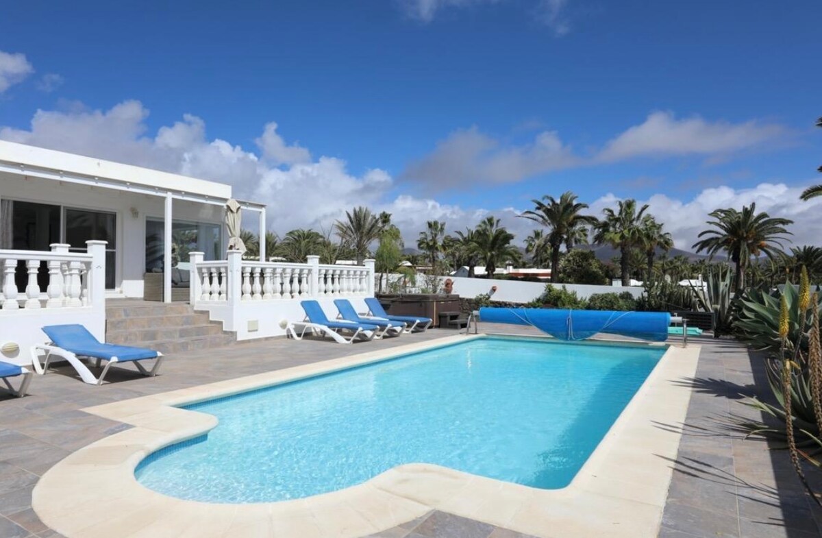 Villa Angelita er fallegt hús á rólegu svæði og er tilbúið til að njóta sín sem par eða fjölskylda. Hér eru mismunandi rými þar sem þú getur slakað á og notið stóru upphituðu laugarinnar frá 1. október til 31. maí og stórs nuddpotts. Það er staðsett í íbúðarhverfi Costa Papagayo. 15 mín. göngufjarlægð frá miðbæ Playa Blanca. Largas treks to Pechiguera lighthouse or Papagayo reserve. Heimilið andar að sér ró.