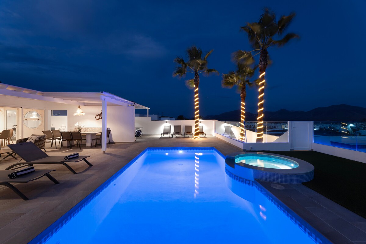 Villa Monarch offers the perfect blend of comfort, style, and space in the peaceful area of Playa Blanca. This beautiful home features three spacious double bedrooms, three full bathrooms, and several terraces, including a rooftop with panoramic views. Guests can enjoy a private pool, barbecue area, and bright interiors designed for relaxation, creating the ideal setting for an unforgettable Lanzarote getaway.