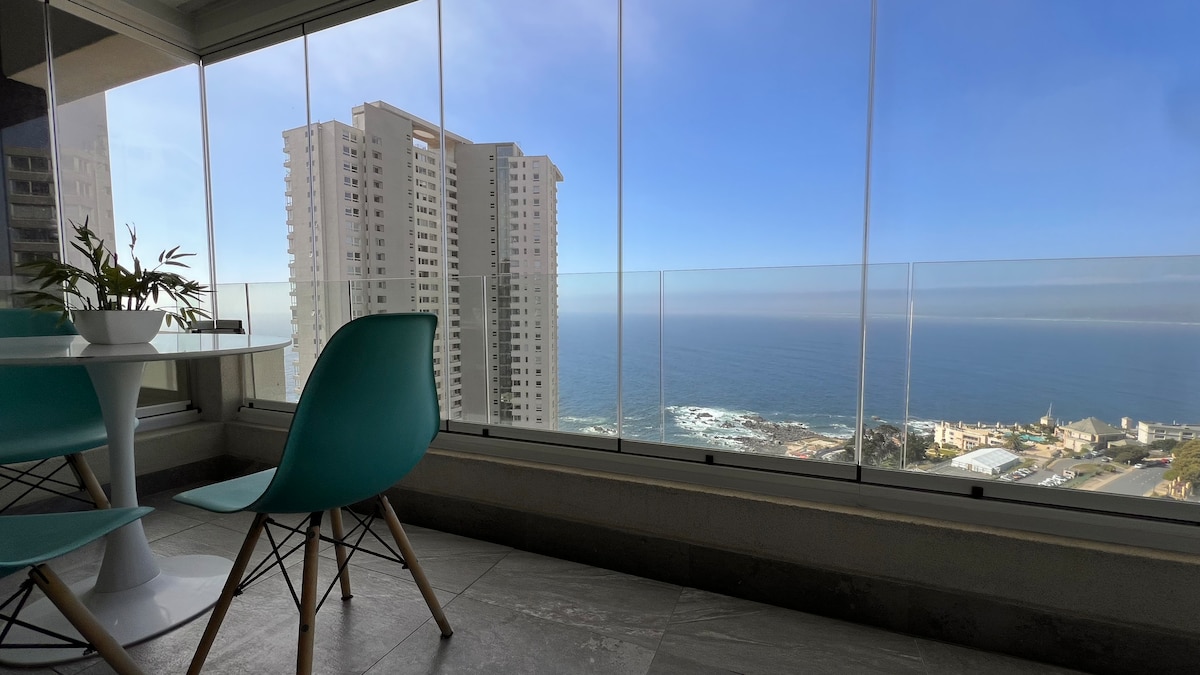 Notaleg íbúð með 2 svefnherbergjum og 2 baðherbergjum, í fyrstu línu og með stórri verönd með óviðjafnanlegu útsýni yfir Valparaíso-flóa. Skref frá Reñaca ströndinni og nálægt frábærum veitingastöðum, hjólastígum, útsýnisstöðum og matvöruverslunum. Íbúðin er rafmagnslaus (eldhús, hiti, heitt vatn o.s.frv.) og er á 4. hæð. Yfirbyggt bílastæði með fjarstýringu. Í byggingunni eru 2 lyftur, einkaþjónusta og öryggisgæsla allan sólarhringinn.