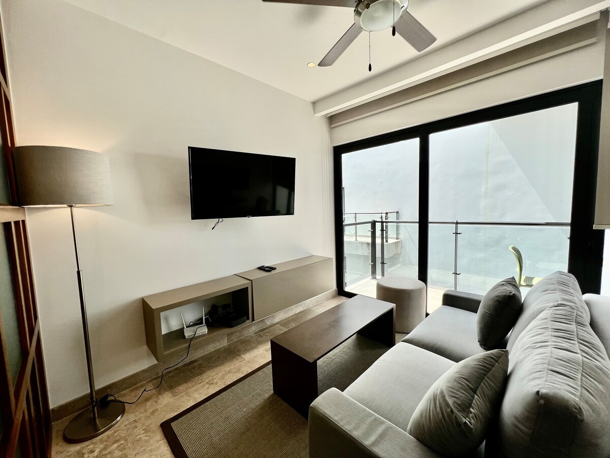 IPANA er ný og nútímaleg íbúð staðsett á besta svæði Playa del Carmen, við Calle 38 og Avenida 10. Nálægt bestu skemmtistöðunum og í 4 mínútna göngufjarlægð frá ströndinni. Með bestu þægindunum á svæðinu, 4 sundlaugum, bar, líkamsrækt, nuddi, samstarfi, barnasvæði, billjard og sjónvarpssvæði. Í íbúðinni er eitt svefnherbergi, fullbúið með þráðlausu neti, snjallsjónvarpi, fullbúnu eldhúsi með bestu þægindunum, sem dvöl þín skortir fyrir nákvæmlega ekki neitt.