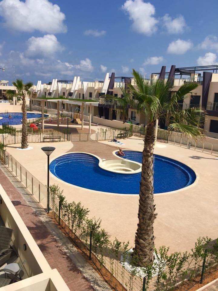 Zapraszamy do 5-gwiazdkowego, oszałamiającego kompleksu wakacyjnego w kurorcie Playa Flamenca - Orihuela Costa. Designerski styl mieszkania z tarasem sprawi, że poczujesz ekskluzywny klimat wakacyjny. W samym kompleksie mieści się kilka basenów 2 podgrzewane i 3 nie. Kilka dla dzieci, Jacuzzi, sauna, siłownia z przepięknym sztucznym wodospadem i bar w basenie. Dla wielbicieli zakupów blisko największe centrum handlowe w okolicy – La Zenia, kręgielnie, sale gier, plac zabaw oraz restauracje.