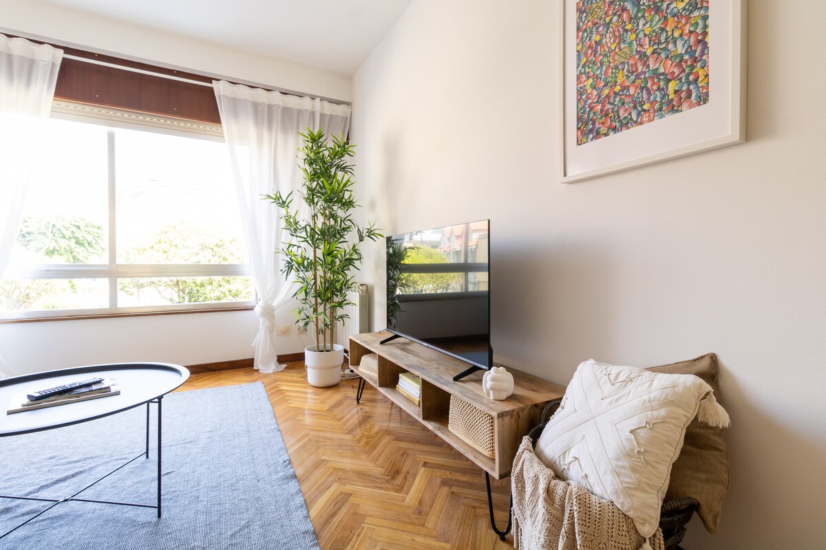 Nútímaleg íbúð í hjarta A Coruña, 1. hæð án lyftu. Frábært fyrir pör eða ferðalanga sem eru einir á ferð. Hér er svefnherbergi, vel búið eldhús, baðherbergi með sturtu, stofa með sjónvarpi og þráðlaust net. Best: einkaverönd sem er fullkomin fyrir afslöppun. Steinsnar frá ströndinni, gamla bænum og frístundasvæðum. Tilvalið til að njóta borgarinnar eins og heimafólk.