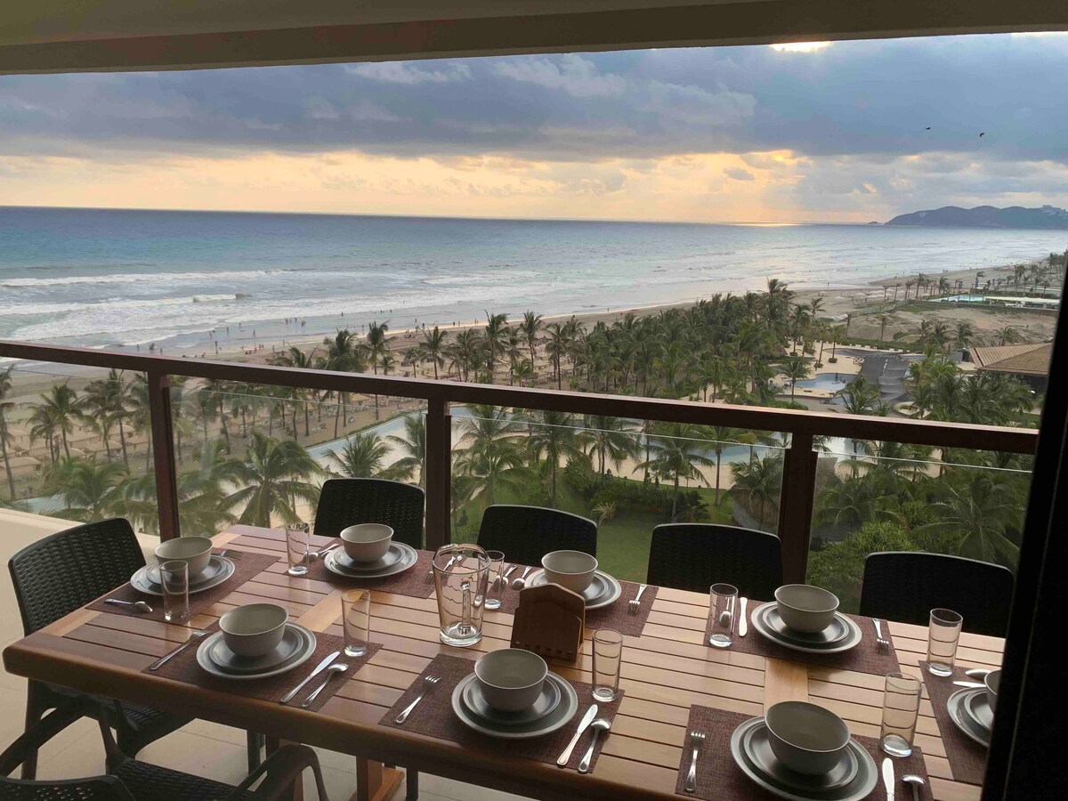 Íbúð á besta svæði Acapulco Diamante, besta turn íbúðarhúsnæðisins þar sem hún snýr að sjónum og er með: lúxusinnréttingar, sundlaugar, hraðá, rennibraut, strandklúbb, heilsulind, einkaströnd, leikvöll fyrir fullorðna og börn, líkamsrækt, sundbraut, tennis og róðrarvelli. Staðsett við hliðina á LA Isla-verslunartorginu (flutningur frá íbúðinni að klúbbhúsinu og La Isla verslunartorginu er innifalinn.