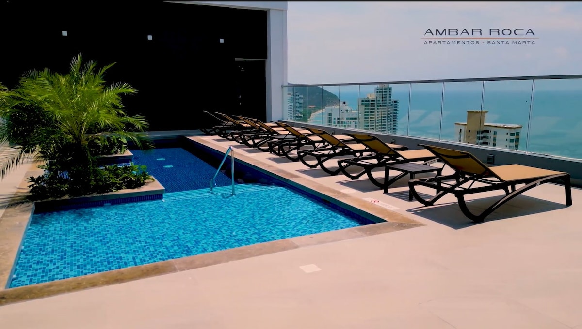 Apartamento en Rodadero, NO REQUIERE PAGOS DE MANILLAS, donde estarás a pocos metros de la Playa del Rodadero y disfrutarás de la Elegancia, Confort y Tranquilidad del Nuevo Edificio Ambar Roca que ofrece gratuitamente zonas de Coworking, tres Piscinas (Niños, Bronceo y Adultos), Jacuzzi, Sauna, Zona Infantil, Teatrino, Gimnasio, Mesa de Ping Pong y parqueadero privado. Adicionalmente El Edificio cuenta con Parrilla BBQ y Salón Social sujetos a disponibilidad y cargo adicional de $100.000 COP.