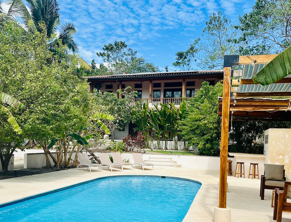 Verið velkomin á fallega suðræna nútímalega strandheimilið okkar í Playa Grande Estates. Casa Manzu er í aðeins stuttri 5 mínútna göngufjarlægð frá aðalbrimbrettastaðnum Playa Grande og stórbrotinni ströndinni og er hið fullkomna strandhús fyrir þig og fjölskyldu þína og vini. Heimili okkar er einnig staðsett í miðbæ Playa Grande þar sem finna má alla bestu veitingastaðina, kaffihúsin, tennisvellina og litlar matvöruverslanir.