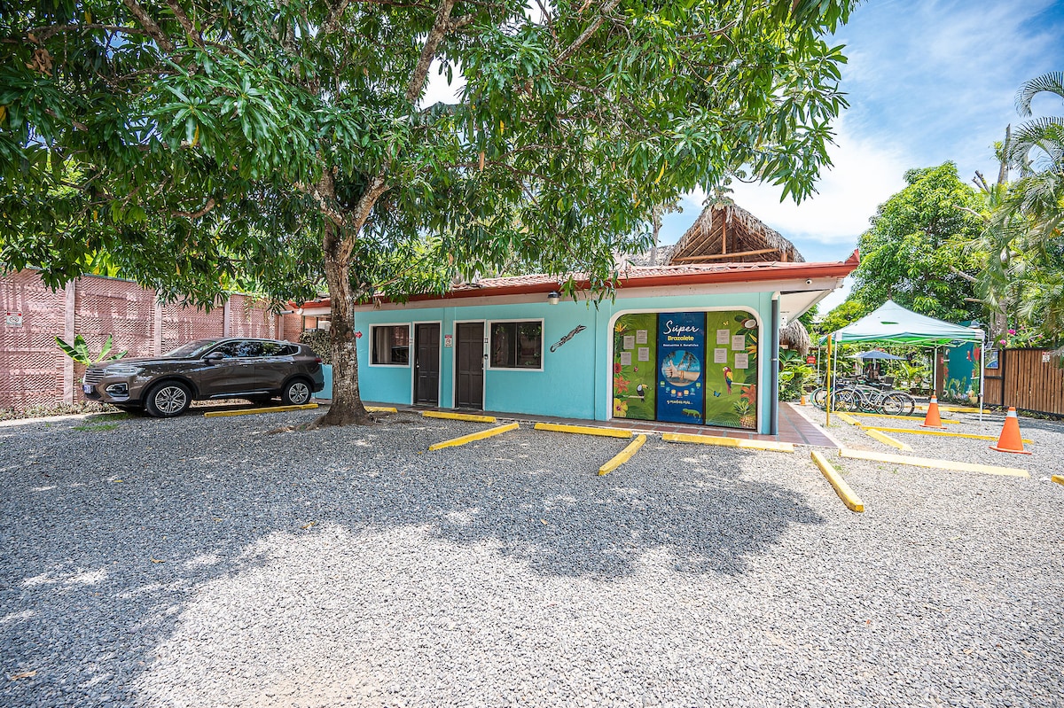 Nous serons heureux de vous accueillir dans ce bungalow avec uniquement des moustiquaires aux fenêtres pour vous protéger des insectes et des persiennes pour l'intimité. L'endroit est idéal pour se reposer, c’est pour cela que la musique forte, les fêtes et les soirées ne sont pas autorisées. Petit déjeuner inclus, et petit déjeuner vegan et sans gluten possibles uniquement sur commande à la réservation. Navette de l'aéroport de SJ à Jaco pour 95$ et pour tout autre trajet, nous consulter.