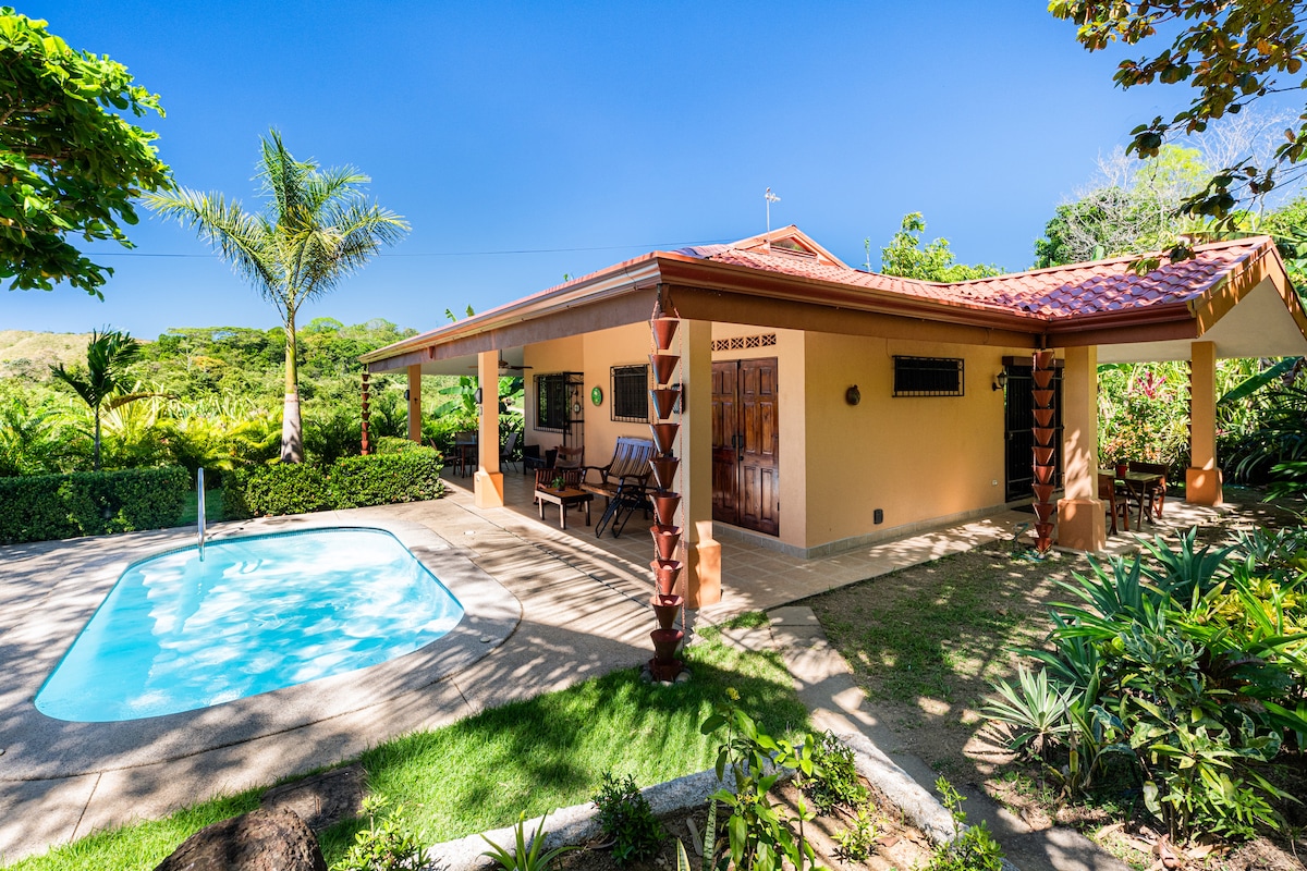 Tranquil Jaco Get Away í Lucious Tropical Gardens Við bjóðum þér að njóta eins svefnherbergis Casita okkar til að komast í burtu í Jaco. Þú getur notið fullbúins húss með eigin einkasundlaug (sundlaugin er ekki sameiginleg), einkabílastæði, fullbúið eldhús með uppþvottavél og loftkælingu (skoðaðu myndirnar okkar til að sjá sundlaugarsvæðið, garða og hversu einka húsið er ).
