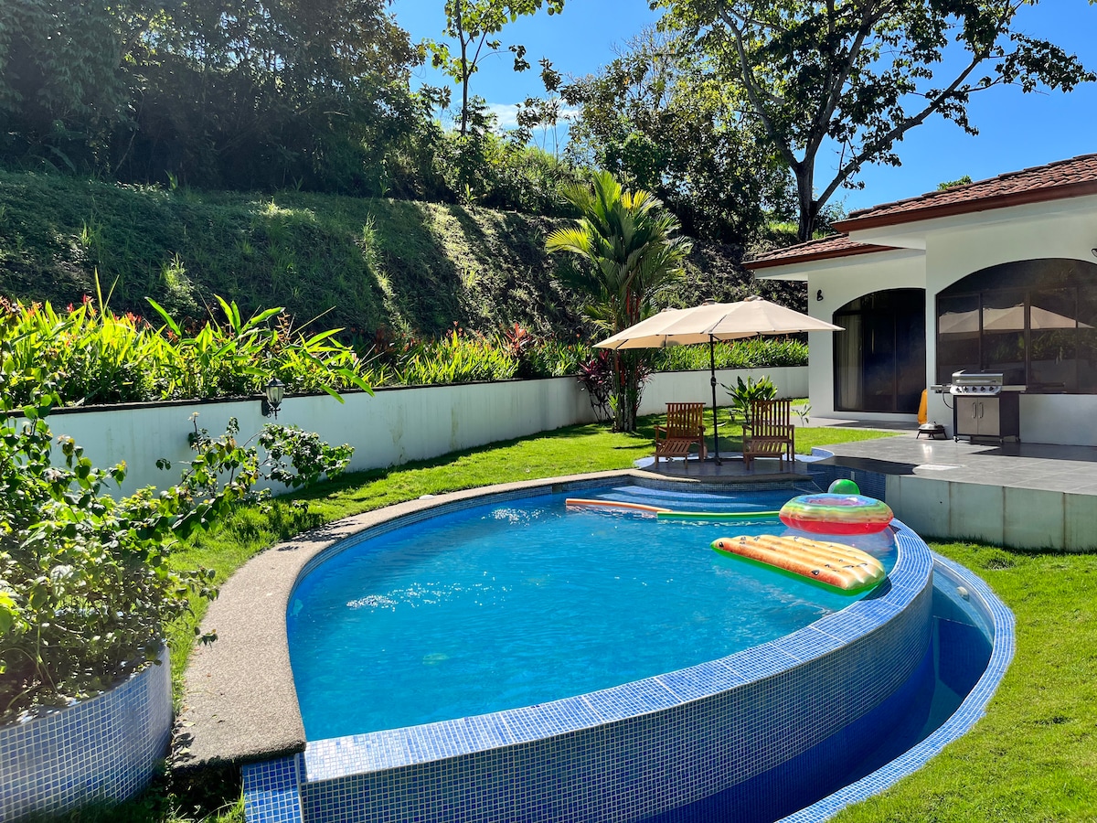 PURA VIDA Estate home is located in the private gated community of Costa Esterillos Estates and offers great atmosphere for family and friends to enjoy with lots of boardgames. Þetta heimili er staðsett í frumskóginum þar sem þú getur notið morgunkaffisins við sundlaugarbakkann um leið og þú hlustar á skarlatsrauða makka, túkall og annað dýralíf á svæðinu. Ströndin er aðeins í 7 mínútna akstursfjarlægð frá svæðinu. Við erum með öll þægindin sem þú þarft fyrir ströndina. Allt sem þú þarft til að taka með, fjölskylda og vinir og NJÓTA!!