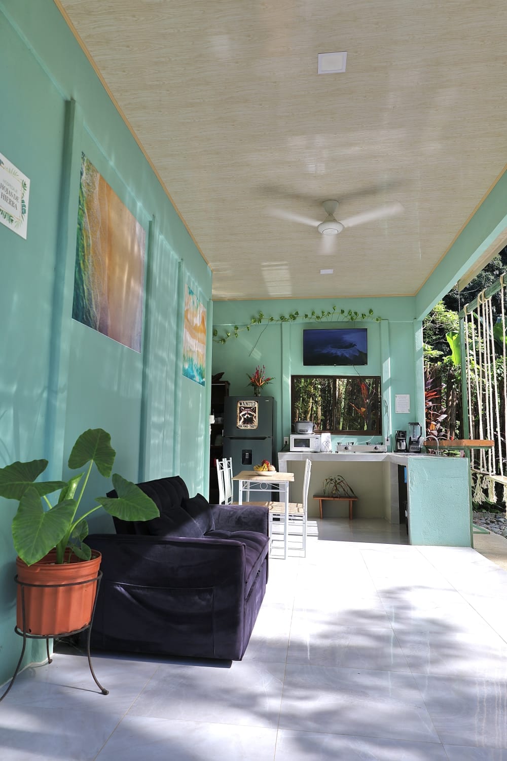 Casa Morroco is a one-of-a-kind property, located in the heart of Jaco, it’s just a short walk from the beach and Jaco’s main street, where you'll find restaurants, bars, supermarkets. It is very private and surrounded by lush gardens. The suite is fully equipped, and ready to host you in comfort. Enjoy the swimming pool, social area, and beautiful gardens, shared with three other suites. Only registered guests are permitted on the property no visitors allowed for your privacy and security.