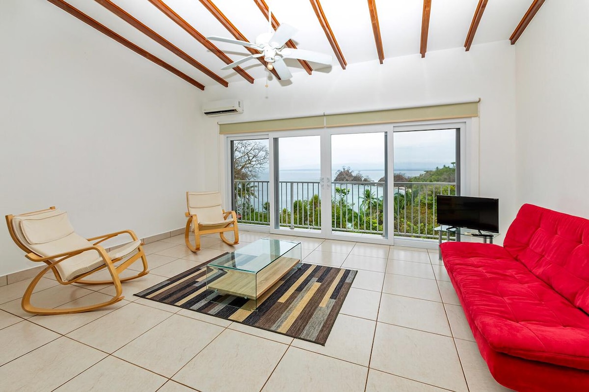 Veranda Paradise er 2 svefnherbergi 2 baðherbergi íbúð staðsett í Los Sueños einn af bestu samfélögum í Kosta Ríka. Það verður tekið á móti þér með spænskum arkitektúr og mjög notalegum skreyttum stað með handmáluðu fuglahandverki yfir íbúðina allt skipulagt til að koma fríinu í gang! Þú munt hafa 2 verönd, fallegt garðútsýni, fullbúið eldhús, WIFI og snjallsjónvarp í öllum herbergjum. Hægt er að velja um 5 sundlaugar með nuddpotti, grill, líkamsrækt með A/C, aðgang að strandklúbbi, smábátahöfn, golf og fleira