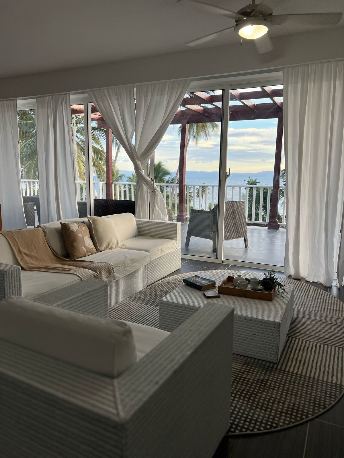 Area NOT affected by Hurricane Melissa. Beautiful Boutique-Hotel style Beach House in THE top location at Playa Bonita and truly beachfront. Fully equipped house for 1 - 2 couple(s), friends or 1 couple w. kids. Energy saving, noise cancelling European windows + sliding doors w. Mosquito screens. PV power backup + cistern. 2 TV's, Netflix, Gas BBQ, Dishwasher, Microwave. Spacious terrace facing the ocean: lounge bed + bathtub for 2, hammock. High speed WIFI. No car traffic.
