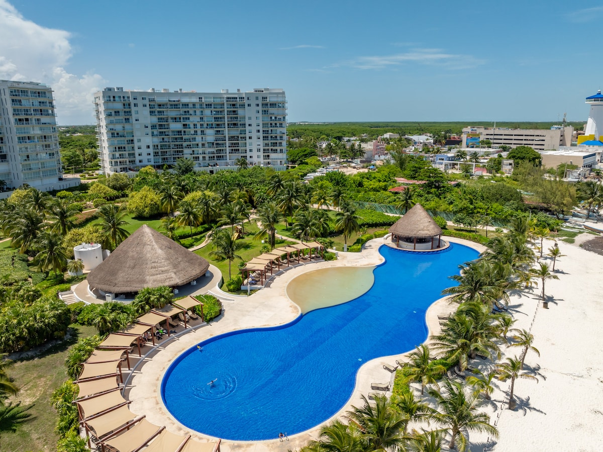 Slakaðu á í þessari glænýju lúxusíbúð sem er staðsett í La Amada, einkasamstæðu við ströndina á fallegri ströndinni Costa Mujeres Punta Sam nálægt Cancun. Vinsælustu þægindin eru: Útsýni yfir smábátahöfnina, þaksvölum, körfubolta-, tennis- og padelvöllum, strandklúbbi, barnaklúbbi og fleira! Lúxusbygging sem er tilvalin til að njóta fullkominnar dvöl í Cancun (fyrir framan Isla Mujeres) umkringd náttúrunni.
