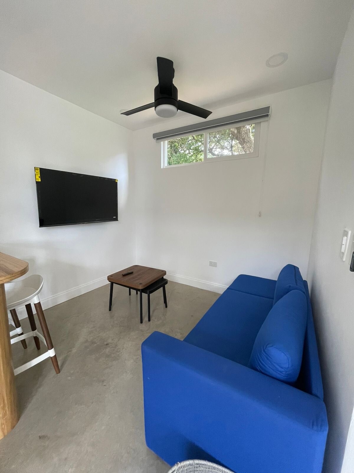 Chic, stylish studio located just steps from town and the beach! Condito Mapache is a new space located just on the edge of the town of San Juan del Sur. Decorated in handcrafted Nicaraguan furniture, and hand painted tiles from Granada, this spacious studio offers you everything you need to be comfortable on your stay in Nicaragua. Wifi, AC, smart TV, Juliette balcony, shared pool, stocked kitchen, washer/dryer and onsite pizza parlour are just some of the perks of this sweet little space!