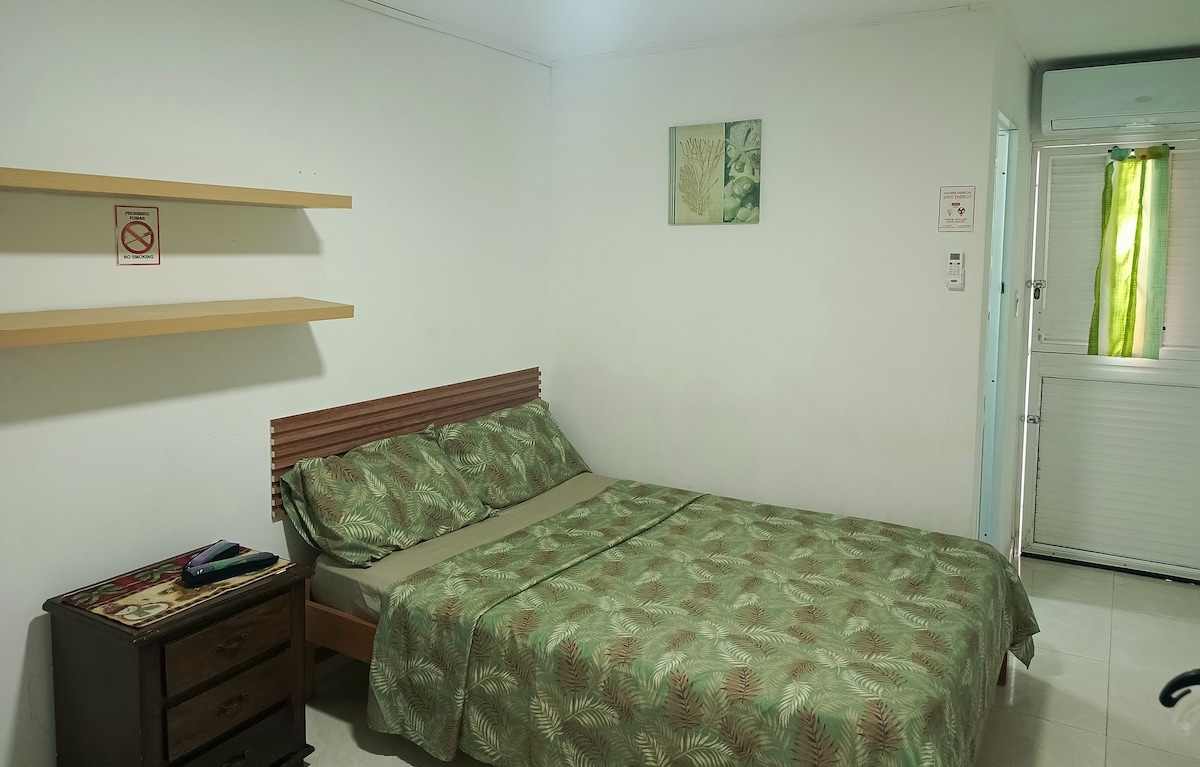 Notaleg íbúð í hálfri húsaröð (30 m.) frá bestu ströndunum í San Andrés, á miðri eyjunni. Það er með hjónarúmi, einu aukarúmi undir hjónarúminu, fullbúna gaseldavél með öllum áhöldum til eldunar og framreiðslu, kapalsjónvarpi, ísskáp, loftkælingu, skáp og sérbaðherbergi. Íbúðin er með litlum glugga við hliðina á eldhúsinu með útsýni yfir innri hluta byggingarinnar. Svæði 20 m2