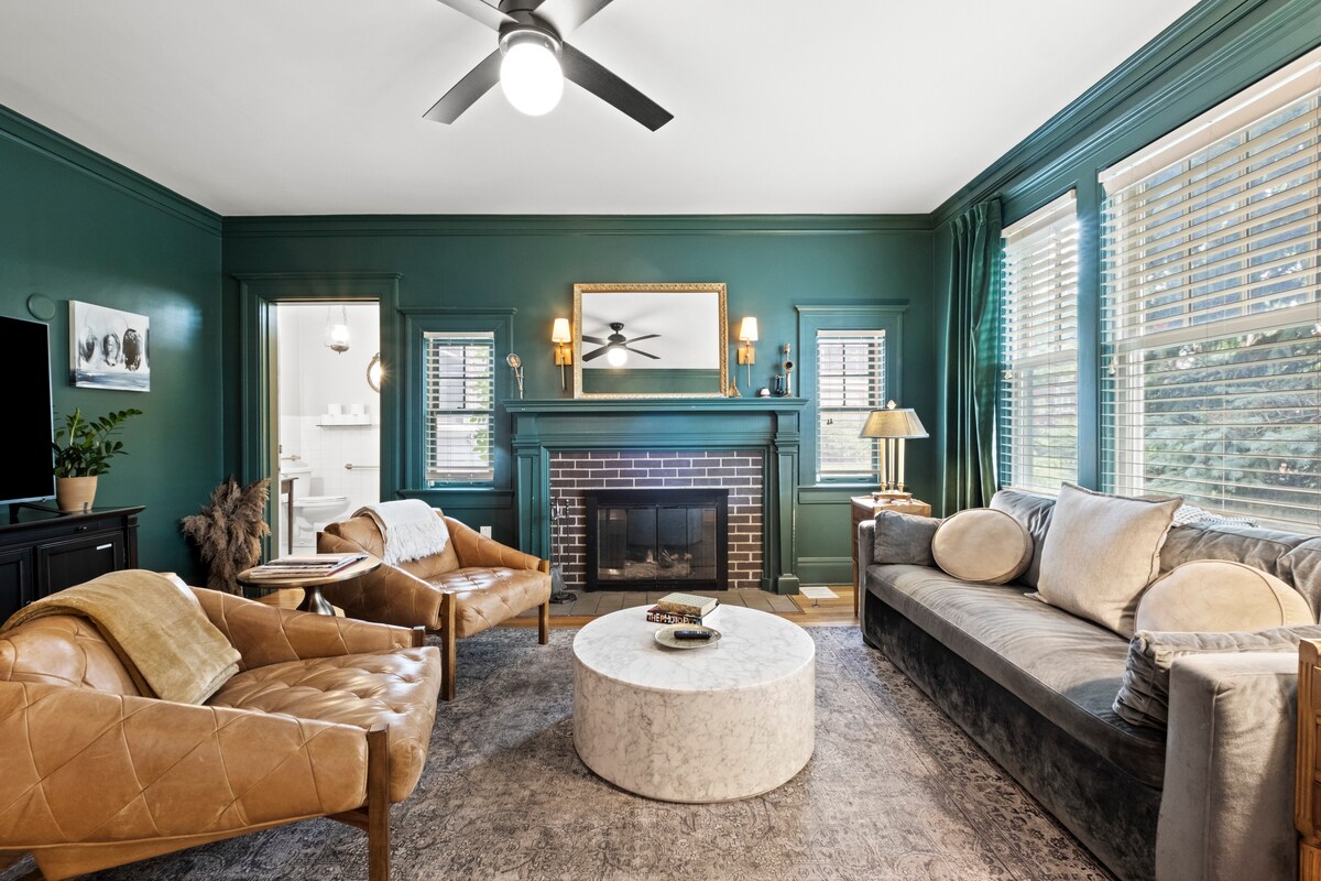 Southmoreland er sögufrægt stórhýsi frá 1913 sem hefur það að markmiði að veita gestrisni og þægindi. Það er þægilega staðsett í hjarta Kansas City 's Country Club Plaza. Ef þú vilt finna þér einstakan valkost í stað hins klassíska hótels í miðbænum þarftu ekki að leita lengur! Á aðalhæðinni er stofa með gasarni og blautum bar, borðstofa með löngu viðarborði og sólstofu með rólu. Veröndin er með lofthæðarháa glugga með útsýni yfir garðinn á sumrin.
