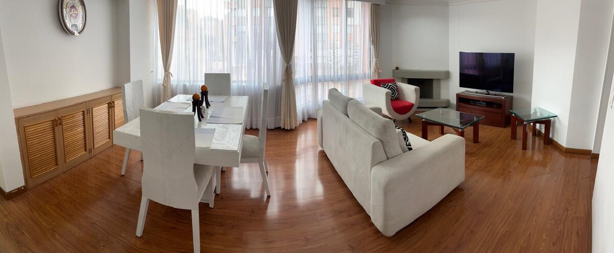 Lúxus eitt svefnherbergi á einstakasta/ öruggasta svæði Bogota (Chico) í göngufæri frá bestu veitingastöðunum, verslunarmiðstöðvunum og nálægð við mörg fyrirtæki. Executive level gisting með sérstakri vinnuaðstöðu, einkaverönd, sjálfvirkum arni, áreiðanlegu þráðlausu neti, einkabílastæði og byggingaröryggi. Þægindi: Njóttu fallegrar verönd með arni og útigrilli. Spilaðu einnig skvass og slakaðu á í gufubaðinu eða gufubaðinu.