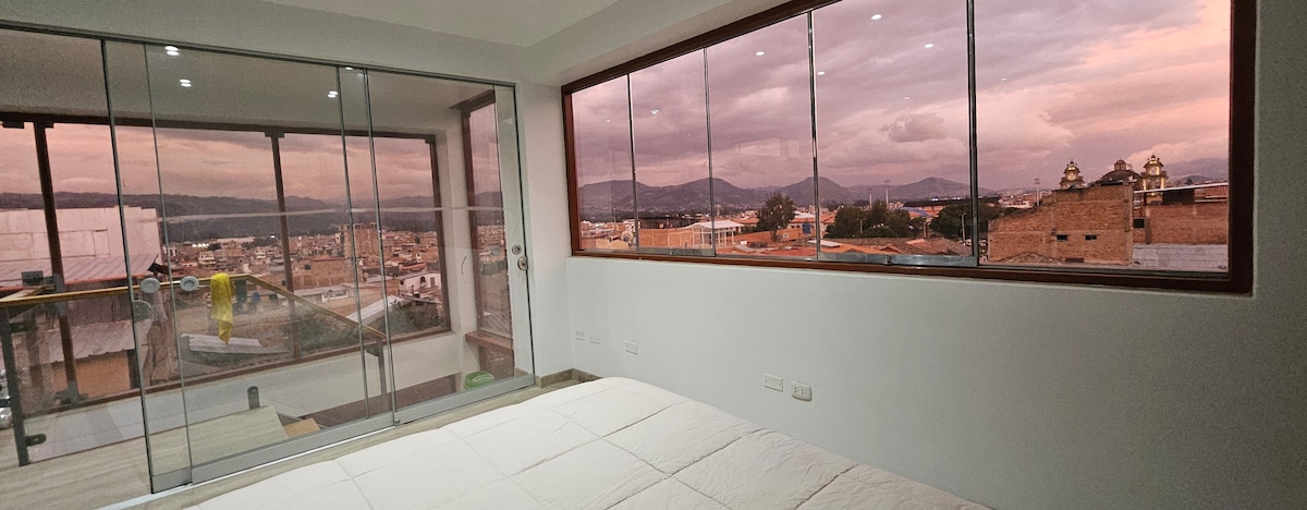 Hámarkshreinlæti í nútímalegu glænýju stúdíóíbúðinni okkar í 5 mínútna fjarlægð frá aðaltorginu og verslunarmiðstöðvunum. Útbúðu allt sem þú þarft til að eiga notalega dvöl í besta íbúðahverfinu, miðsvæðis og öruggt í Cajamarca. Heitt vatn í öllum krönum, fullbúið eldhús, öll nauðsynleg tæki og áhöld, háhraða aðgangur að þráðlausu neti og 55 tommu sjónvarp.