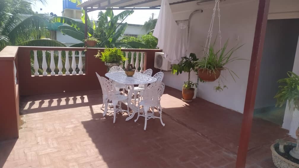 Es una casa construida en 1954 de 2 plantas en una parte alta de la ciudad con hermosas vista de la Habana , espaciosa y cómoda con 3 terrazas , cocina equipada , en el centro de la Habana todo queda cerca, en el barrio de nuevo vedado muy cerca del bosque de la Habana , del zoológico y de la plaza de la revolución. La casa fue propiedad de mis padres y ahora es el negocio de nuestra familia del cual nos enorgullece. Tenemos respaldo eléctrico con paneles solares