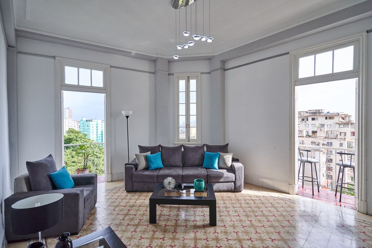 Independent apartment ideal for couples, families, or friends. Spacious, breezy, and luminous. Equipped kitchen, bathroom with hot and cold water 24 hours a day. It has many windows and balconies. If you want to enjoy a central but quiet place this is your ideal spot. In just 20 minutes you can reach the city's historic district by taxi for 0.50 CUC per person. 6 blocks away from the Fabrica de Artes and Malecon. Close to markets, cafes and restaurants.