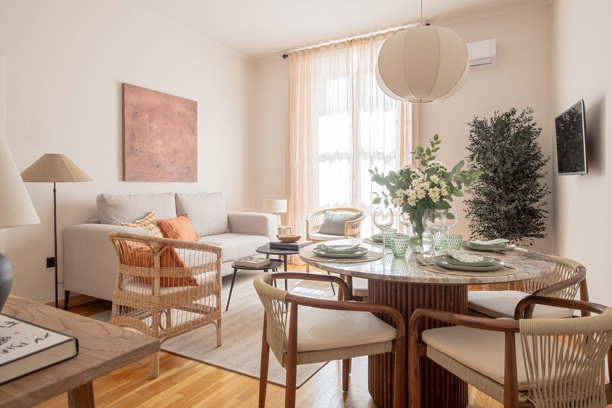 ✨ Íbúð í hjarta Sevilla ✨ Þessi bjarta tveggja svefnherbergja íbúð er tilvalin fyrir fjóra: tvö pör, fjölskyldu með börnum eða vini sem kjósa að vera í aðskildum herbergjum. Óviðjafnanleg 📍 staðsetning: við hliðina á Guadalquivir-ánni og í nokkurra mínútna göngufæri frá dómkirkjunni, Giralda, Real Alcázar, Metropol Parasol og heillandi hverfum eins og Triana og Santa Cruz. Þú munt upplifa ósvikna upplifun í Arenal, einu táknrænasta hverfi Seville.