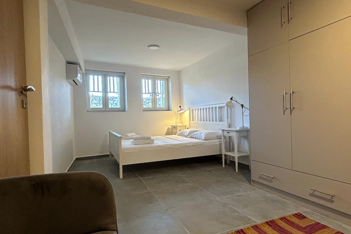 And old workshop is restored and transformed to a one bedroom house with a gallery ready to host families or friends till four people.The yard completes the scenary for the perfect holiday in lovely Plomari. Ground floor: living room, kitchen, bedroom with a double bed and a bathroom with a shower. Gallery : a double bed (not a separate bedroom)
