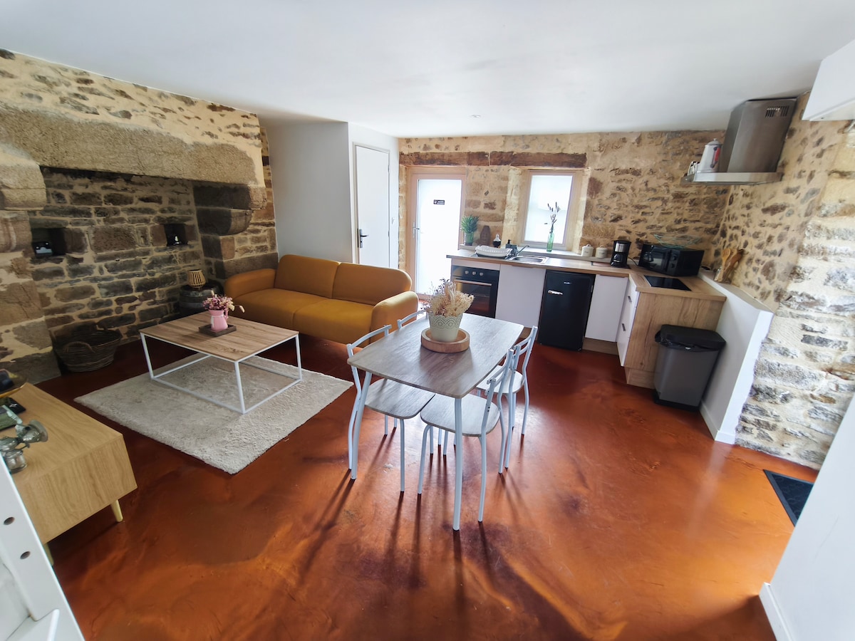 Slakaðu á á þessu rólega og úthugsaða heimili. "Belles de Bretagne" býður þér þetta hús staðsett í hjarta þorpsins í litlu húsasundi, við hliðina á eigendunum. Þú færð öll þægindi, rúmföt og baðföt Það samanstendur af stofu sem er opin út á verönd sem er um 20 m2, herbergi með 160 x 200 hjónarúmi, sturtuklefa, aðskildu salerni. Ókeypis bílastæði eru í boði við samliggjandi götur.