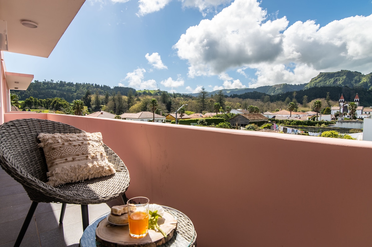 Chez Marie is a freestanding villa on Furnas in São Miguel island. Full of character, nice living room, complete kitchen, and 2 bedrooms. Outside, it has a large private leisure space with a breathtaking view of the Furnas valley. Self check-in available. A Chez Marie situa-se nas Furnas, e apresenta uma combinação perfeita entre um traço rústico e um ambiente sofisticado. Dispõe de 2 quartos, wc, cozinha e sala, e um amplo espaço de lazer com uma vista deslumbrante para o vale das Furnas.