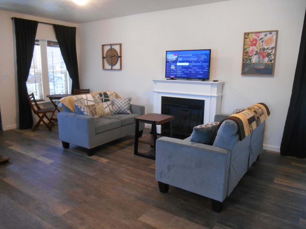 Komdu með fjölskylduna og slakaðu á á þessu krúttlega 850 fetum stóra heimili! Tvö þægileg svefnherbergi með queen-size rúmum og notaleg stofa með svefnsófa í queen-stærð og 65 tommu sjónvarpi veita nægt pláss fyrir alla. Byrjaðu daginn á kaffibarinn og slakaðu síðan á á girðingunni. Friðsælt hverfi, þægilegur aðgangur að hraðbraut - 2 mín. að ISU, 4 mín. að sjúkrahúsinu, 6 mín. að gamla bænum og 30 mín. að Lava Hot Springs!