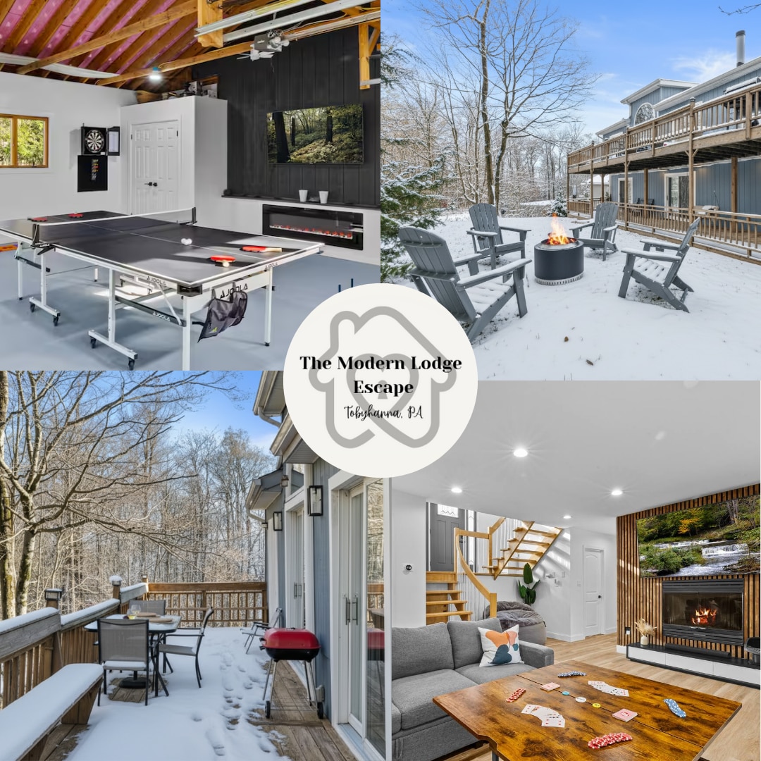 ✨ÞETTA SNÝST UM AÐ FINNA RÓ Í RINGULREIÐINU ✨ og skapaðu minningar... 🌿4 EKRUR AF NÝTILEGUM EINMANNARÚMI, RÓ OG HEILLANDI VESTURHEIMSBREYTU 🌿4 NÝTILEG SVÖFNUHERBERGI • 3000+ FERFETUR AF HREINNI SKEMMTUN 🏡Nútímalegt sérhannað afdrep í hjarta Poconos - töfrandi náttúra og dýralíf en samt í nokkurra mínútna fjarlægð frá helstu áhugaverðum stöðum Poconos 💖Fullkomið fyrir hópa af öllum stærðum - allt frá rómantískum fríum til fjölskyldusamkoma, sérstakra tilefna eða afslöppunar með vinum og ástvini ⭐Yfir 100 skemmtilegar afþreyingar innandyra og utandyra fyrir alla aldurshópa ⭐